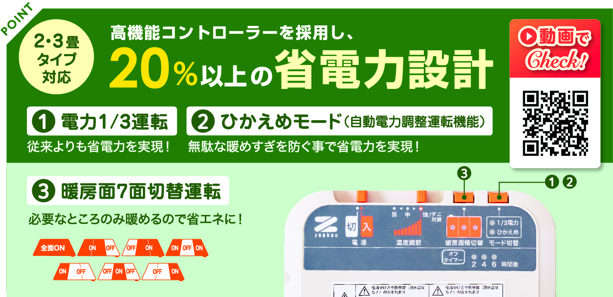 運転状況が一目でわかるフラットな薄型コントローラーを採用しています。