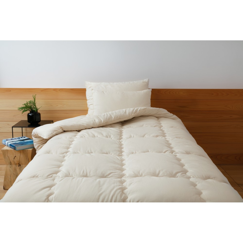 原料から製品に至るすべての工程においてトレーサビリティが徹底され、有害とされる薬剤などが混入していないことが確認された、安全安心なものづくりから生まれたおふとんです。