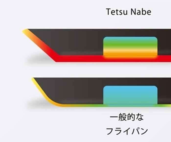 表面(鉄分子)にチッソ(窒素)を拡散させ鉄表層の性質を変えること(チッカ黒染め加工)で、鉄鍋の表面の強度を高め(鉄の約7倍)、錆びにくい性質(油引きも不要)を持たせました。通常のコーティングと違い調理時に付着した鉄分も安全に摂取できるため鉄不足も補えます。
