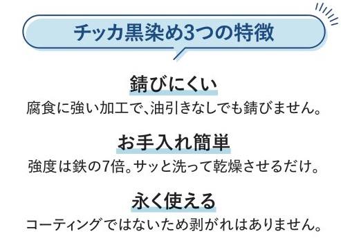 錆びにくい理由は「チッカ黒染め加工」にあり!!