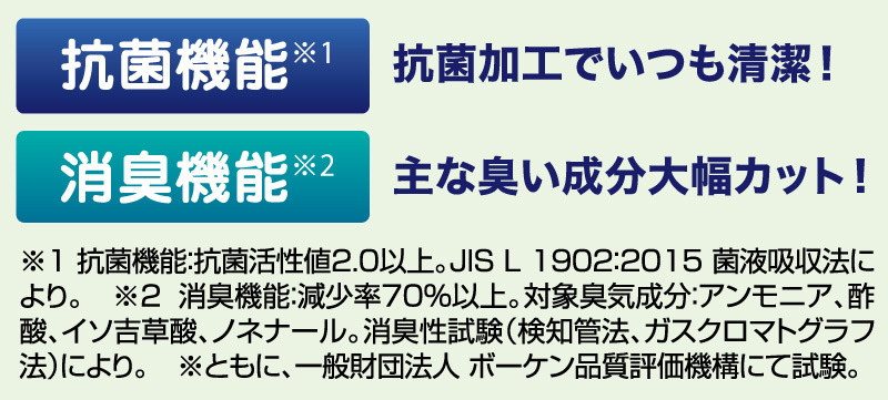 本製品は、足入れ部内部の生地に、抗菌・消臭加工をしています。